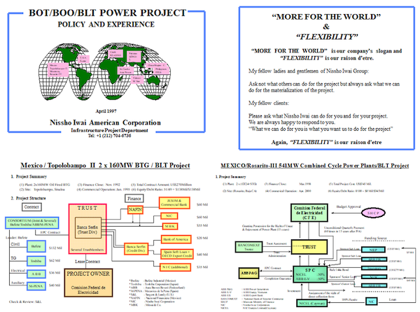 日商岩井米国ニューヨーク時代に吉良州司が作成したインフラ・プロジェクト用のプレゼンテーション資料の一部