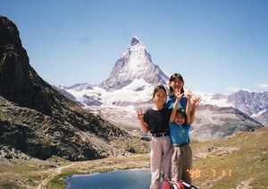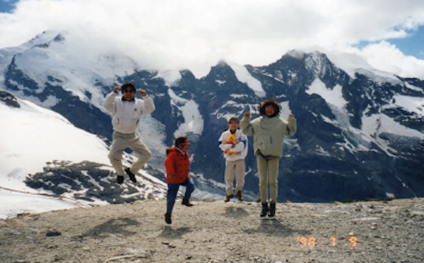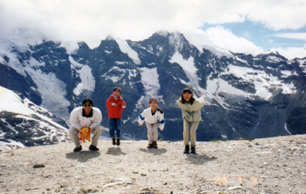 7月にはドイツ、スイス、オーストリアを2週間旅行しました。主な目的地はスイスの山々で、移動日を除いては毎日のようにみんなでハイキングを楽しみました。澄み切った空気に触れ、銀色に輝くスイスアルプスの峯峰を見ながら、鉱山植物が咲き誇る山道をみんなで歌を歌いながらハイキングするのは最高です。さっちゃんも立派なもので最後まで歩き通しました。この旅行の出発前、長女のあやのはお母さんの背丈(161cm)を追い越してしまっており、このハイキングでもお父さんに次ぐ荷物の担ぎ手として大活躍しました。また、ホテルの料理がどこでも、毎日おいしく、千代美はそれだけでも天にも昇らんばかりに喜び、感動していました。それも、そのはず、今回のホテル選びはお父さんが色々な雑誌やホテル案内書を調べ、家族的雰囲気で安いところにFAXを入れ、一軒一軒、部屋、食事、値段の交渉をして決めたものです。黙ってテーブルに着くだけで、おいしい食事が出てくるというのは主婦にとってはたまらなく幸せのようです。お陰でいい嫁さん孝行が出来ました。