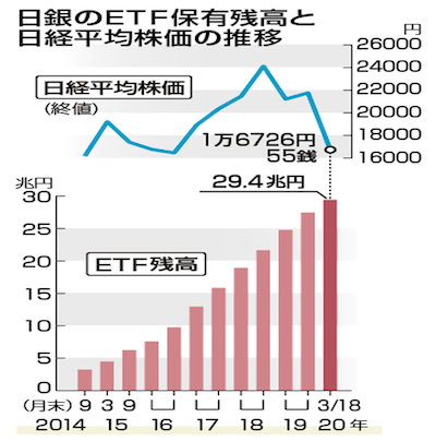 安倍晋三前総理は口を開けば「アベノミクスによって日本経済が力強く回復している」と力説します。その具体的成果として、高い株価と有効求人倍率を挙げます。しかし、業績とはかけ離れた高い株価水準は、日銀による国債やETF(上場投資信託)とJ-REIT(不動産投資信託)の大量購入、最近は企業の資金繰り支援のためのCP(コマーシャルペーパー)や社債の引受け、GPIF(年金積立金管理運用独立行政法人)による大量の株式投資、など官による投資によって底上げされる国家資本主義的官製相場と言えます。