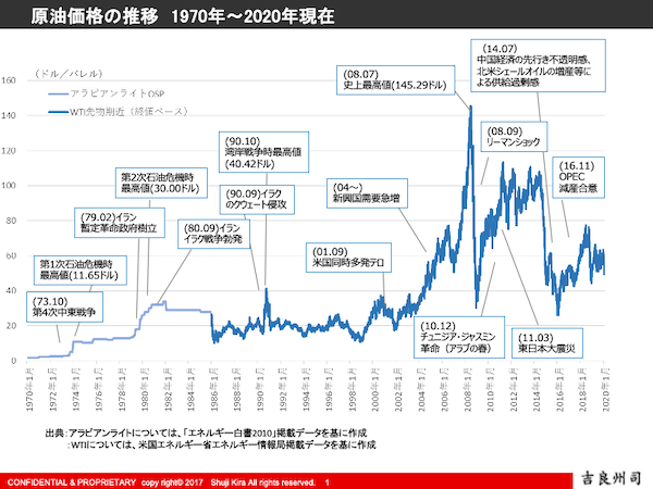 その第一は、日銀黒田総裁と二人三脚で進めた金融緩和と円安誘導が柱のアベノミクスですが、もし、石油価格があのまま2014年前半までのようにバレル100ドルを超える水準で推移していたら、日本経済はひとたまりもなかったと思います。しかし、中国経済の先行き不安および米国シェールオイル、シェールガスの増産の影響でバレル40ドル台、一時は20ドル台にまで大きく下落し、日本経済が大打撃を受けることはなかったからです。