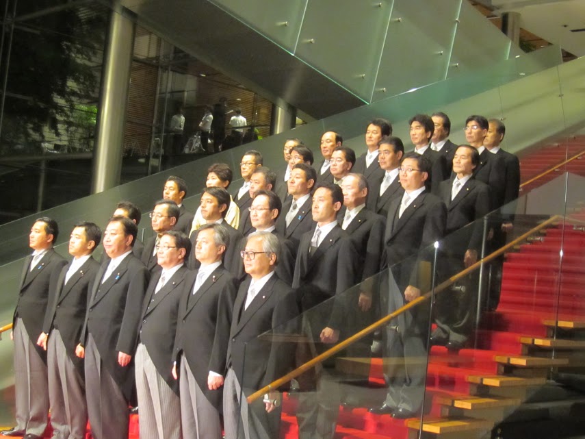 宮中での認証式の後、官邸での記念撮影。引き続いて総理出席の下、初の副大臣会議に出席しました。