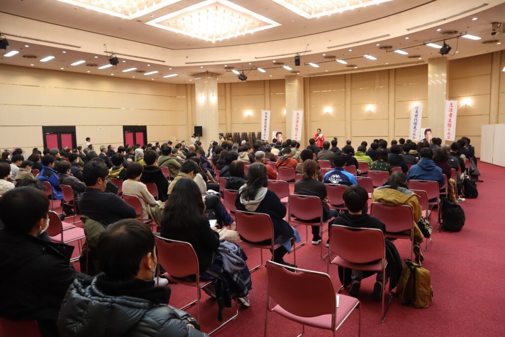 そして、夜6:30からはコンパルホールで、吉良州司の個人演説会がありました。寒さ厳しい夜の時間帯に、多くの方々にお集まりいただき、ありがとうございました。