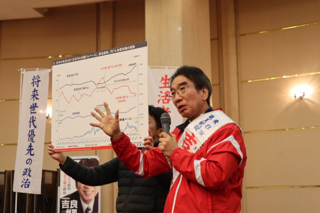 演説では、昼間の高市首相の発言を引いて「物価高の要因は行き過ぎた円安である」について、パネルを利用して丁寧な説明がありました。政策通としての側面が十分に発揮された内容となりました。