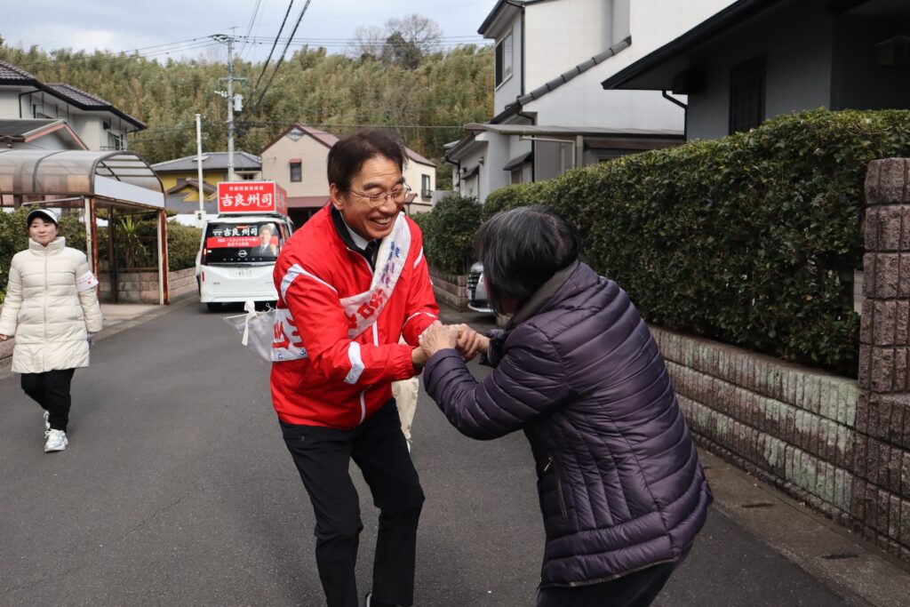 寒さの厳しい中でも、家の外に出て来てくれる方が多く、その度に、吉良は選挙カーを飛び出し、駆け付けます。