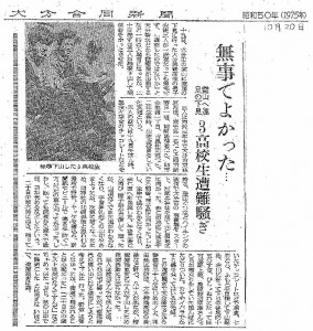 それからというもの、その民家には続々と報道関係者が到着し、夜のニュースでは大分県版のトップに出るし、合同新聞には、「3高生、帰らず!霊山で遭難!」とかなんとか3面記事を埋め尽くし、朝日、読売新聞にも、「霊山で遭難!」と書かれるわ、惨惨な目にあいました。
